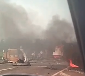 O dois veículos tombaram e o Corsa pegou fogo na pista. O trânsito ficou interrompido por cerca de 1 hora.