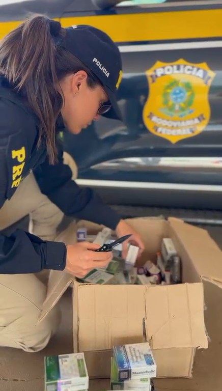 APolícia Rodoviária Federal (PRF) apreendeu uma carga de medicamentos, neste sábado (31), em Coxim (MS).